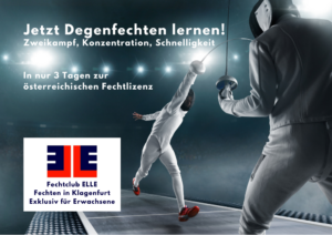 Der FC ELLE veranstaltet vom 20. bis zum 23. März einen Degenkurs im Fechtzentrum Villach! Zur Buchungsseite ACHTUNG: maximal 8 Teilnehmer! MINDESTALTER: 18 Jahre Teilnahmegebühr für einen Teilnehmer Gruppenkurs: Anfänger Degenfechten Erwachsene Kursziel: Abschluss mit Turnierreifeprüfung In der Kursgebühr inkludiert: österreichische Fechtlizenz samt Fechtpass (nach bestandener Prüfung) Option nach